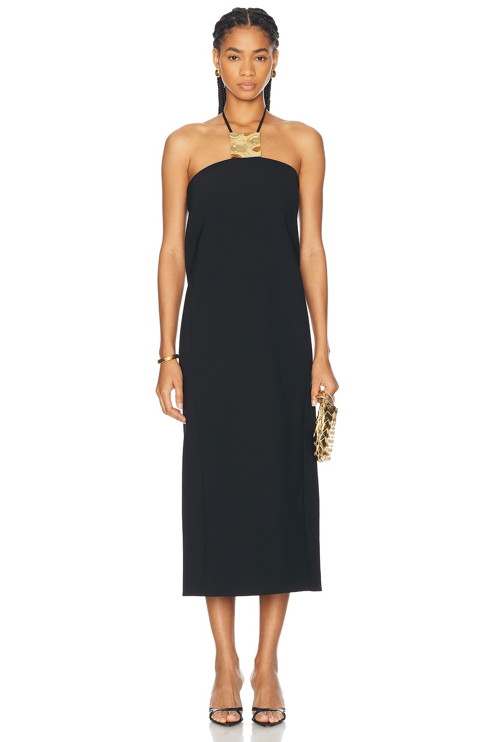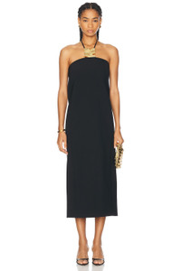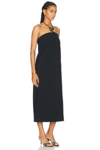 Details - Self: 92% polyester, 8% polyurethane - Lining: 95% polyester, 5% elastane - Contrast Fabric: 90% polyester, 10% elastane - Made in China - Dry clean only - Fully lined - Hidden back zipper closure - Boned bodice - Halterneck tie with gold-tone hardware - Crepe fabric - Our Style No. ALXF-WD550 - Manufacturer Style No. A3240434-9674