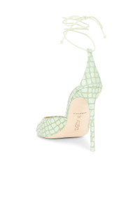 Details - Croc-embossed leather upper with leather sole - Made in Brazil - Wraparound ankle tie closure - Leather footbed and lining - Almond toe - Stiletto heel - Approx 100mm/ 4 inch heel - Our Style No. ALXF-WZ1 - Manufacturer Style No. A42521011605