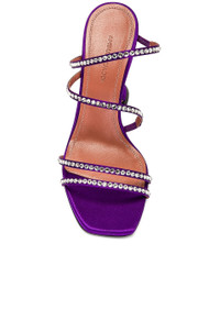 Details - Satin upper with leather sole - Made in Italy - Clear crystal embellishments at straps - Leather lining - Square toe with satin martini heel - Approx 95mm/ 3.74 inch heel - Our Style No. AMUD-WZ276 - Manufacturer Style No. NAIMA CRYSTAL