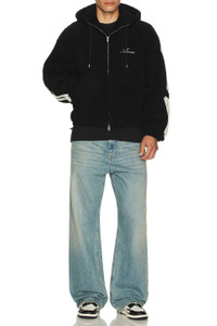 Details - Self: 54% acrylic, 46% polyester - Lining: 100% viscose - Dry clean only - Front zipper closure - Logo detail at chest - Attached drawstring hood - Side slant pockets - Midweight fleece fabric - Made in Italy - Our Style No. AMIF-MK204 - Manufacturer Style No. AMOUJA1010-001