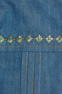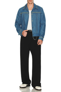 Details - Self: 88% cotton, 10% polyester, 2% other fibers - Lining: 100% viscose - Made in Italy - Dry clean only - Front snap button closure and cuffs - Side seam pockets and single interior chest pocket - Midweight pleated denim with embellished trim - Midweight pleated denim with embellished trim - Our Style No. AMIF-MO185 - Manufacturer Style No. AMDNJT1004