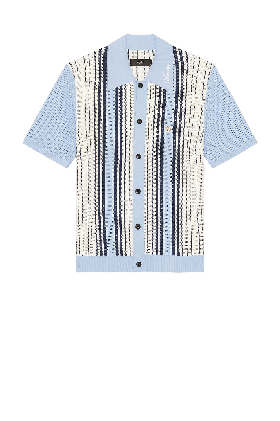 Details - 70% viscose, 30% polyester - Spot clean only - Front button closure - Gold-tone metal Amiri logo initials at chest - Midweight knit fabric with ribbed trim - Made in Italy - Our Style No. AMIF-MS473 - Manufacturer Style No. AMKNIR1026