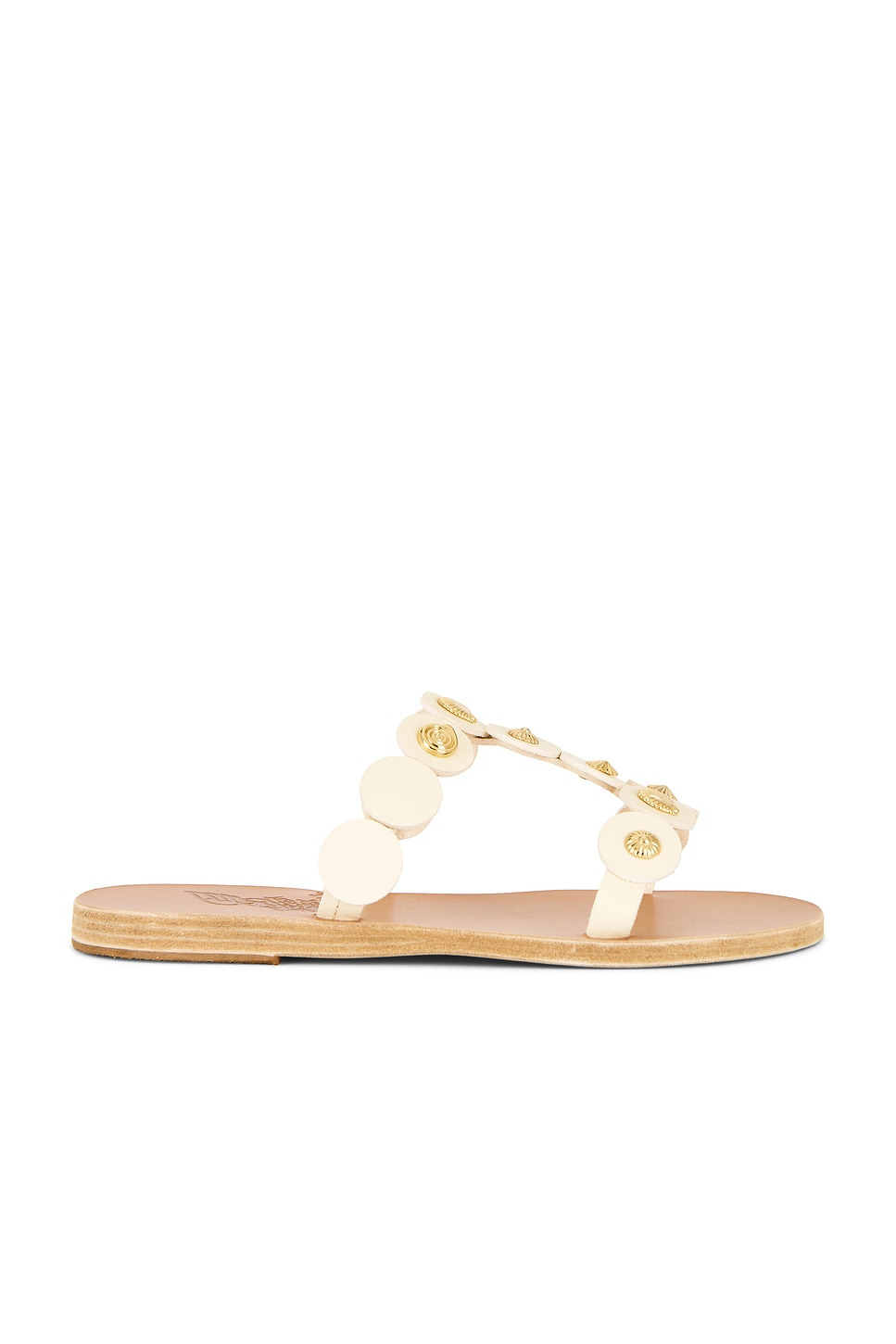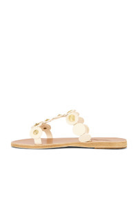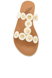 Details - Vanchetta leather upper with leather sole - Slip-on styling - Leather footbed - Gold-tone shell embellishments - Made in Greece - Our Style No. ANCI-WZ171 - Manufacturer Style No. 12469_1051_00379
