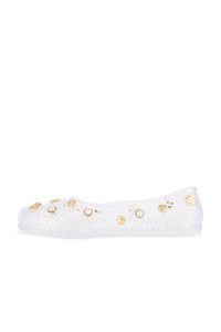 Details - PVC upper with PVC sole - Slip-on styling - PVC footbed and lining - Gold-tone shell and faux pearl embellishments - Almond toe - Made in Italy - Our Style No. ANCI-WZ175 - Manufacturer Style No. 12104_1172_00145