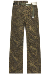 Details - 100% cotton - Made in Korea - Dry clean only - Zip fly with button closure and adjustable tab at side - Attached belt with buckle closure - 4-pocket design - Leopard print rigid denim - Our Style No. ANBF-MJ8 - Manufacturer Style No. apa803u