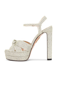 Details - Tweed upper with leather sole and gold-tone hardware - Made in Italy - Ankle strap with buckle closure - Knotted strap detail - Leather lining - Almond toe - Approx 130mm/ 5.1 inch heel - Approx 36mm/ 1.4 inch platform - Our Style No. AAZZ-WZ429 - Manufacturer Style No. NINHIGB0-HNC-CCC