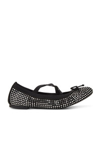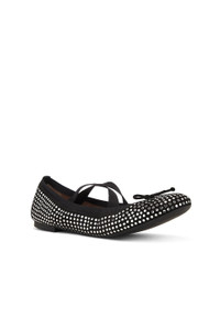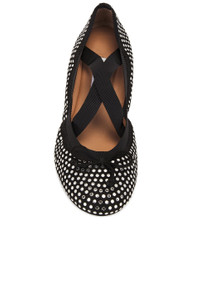 Details - Studded suede upper with rubber sole - Made in Italy - Slip-on styling with crisscross elastic straps - Leather footbed and lining - Suede bow at vamp - Almond toe - Our Style No. AAZZ-WZ418 - Manufacturer Style No. RMXFLAA0-DMR-00S