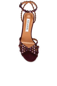 Details - Tonal studded crystal suede upper with leather sole - Made in Italy - Ankle buckle closure - Leather footbed and lining - Almond toe with stiletto heel - Approx 105mm/ 4.13 inch heel - Our Style No. AAZZ-WZ448 - Manufacturer Style No. TQLMIDS0-SUE