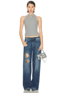 CRYSTAL CHAIN CUTOUT RELAXED JEAN