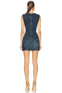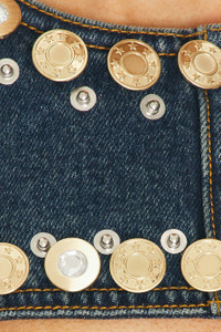 Details - 100% cotton - Made in China - Dry clean only - Unlined - Back zip closure - Back slip pocket and front gold-tone hardware with chest cut-out - Midweight denim fabric - Our Style No. ARFE-WD162 - Manufacturer Style No. RS25AWDR0105DE01