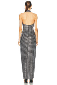 CRYSTAL EMBELLISHED HALTER SLIT GOWN