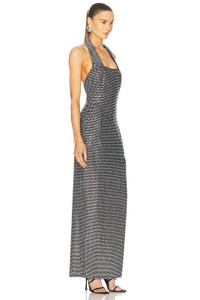 Crystal Embellished Halter Slit Gown