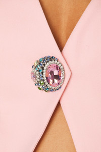 Details - Self: 100% virgin wool - Lining: 100% viscose - Made in Italy - Dry clean only - Singular front rhinestone button closure - Front seam pockets - Twill fabric at front with satin panel at back - Our Style No. ARFE-WS176 - Manufacturer Style No. SS25AWTA0025FA01