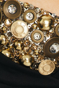 EMBROIDERED CRYSTAL BUTTON CLUSTER DRAPED MINI DRESS