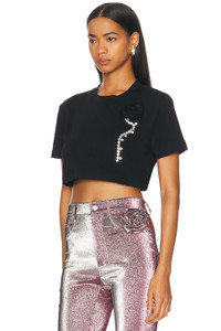 CRYSTAL ROSETTE CROPPED T-SHIRT
