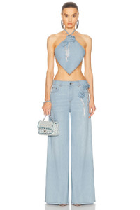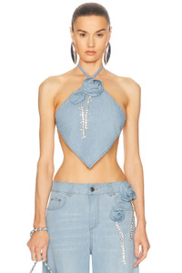 Details - 100% cotton - Made in Italy - Machine wash - Halterneck and back tie-up closures - Front 3D floral and rhinestone embellishment - Chambray fabric - Item not sold as a set - Our Style No. ARFE-WS179 - Manufacturer Style No. SS25AWTP0084DE01