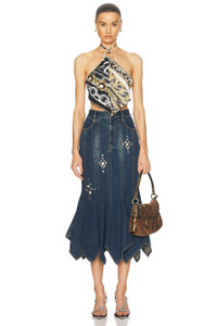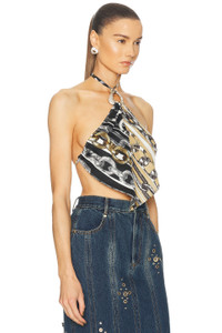 CHAIN PRINTED CRYSTAL LINK HANDKERCHIEF TOP