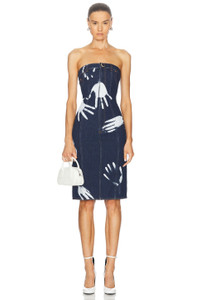 HANDPRINT STRAPLESS MIDI DRESS