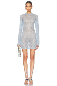 SEQUIN CROCHET LONG SLEEVE MINI DRESS