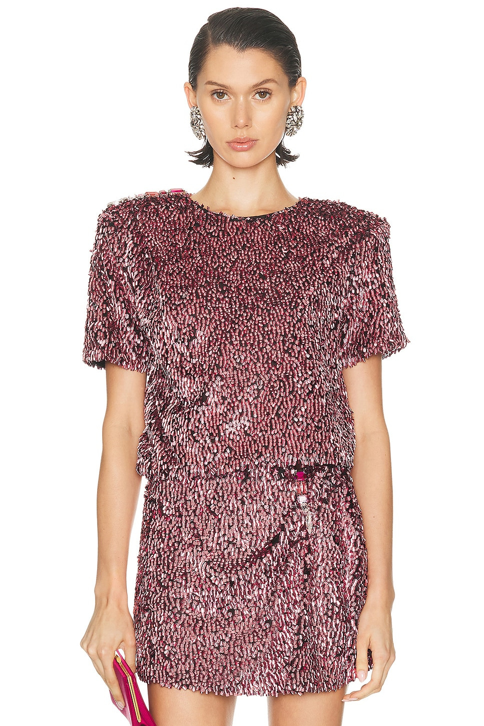 Details - Self: 84% viscose, 12% polyamide, 4% elastane - Lining: 85% polyamide, 15% elastane - Dry clean only - Pull-on styling - Padding at shoulders - Sequin embellished fabric - Item not sold as a set - Made in China - Our Style No. ARFE-WS191 - Manufacturer Style No. FW25AWTS0048FA01