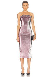 Stretch Lame Rosette Midi Dress