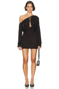 Details - 55% silk, 45% viscose - Made in South Korea - Dry clean - Unlined - Pull-on styling - Front tie closure - Lightweight knit textile - Draped bodice - Open back design - Our Style No. AYAF-WD111 - Manufacturer Style No. AMFW2516