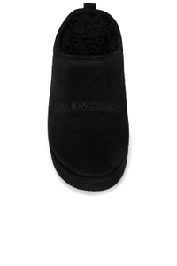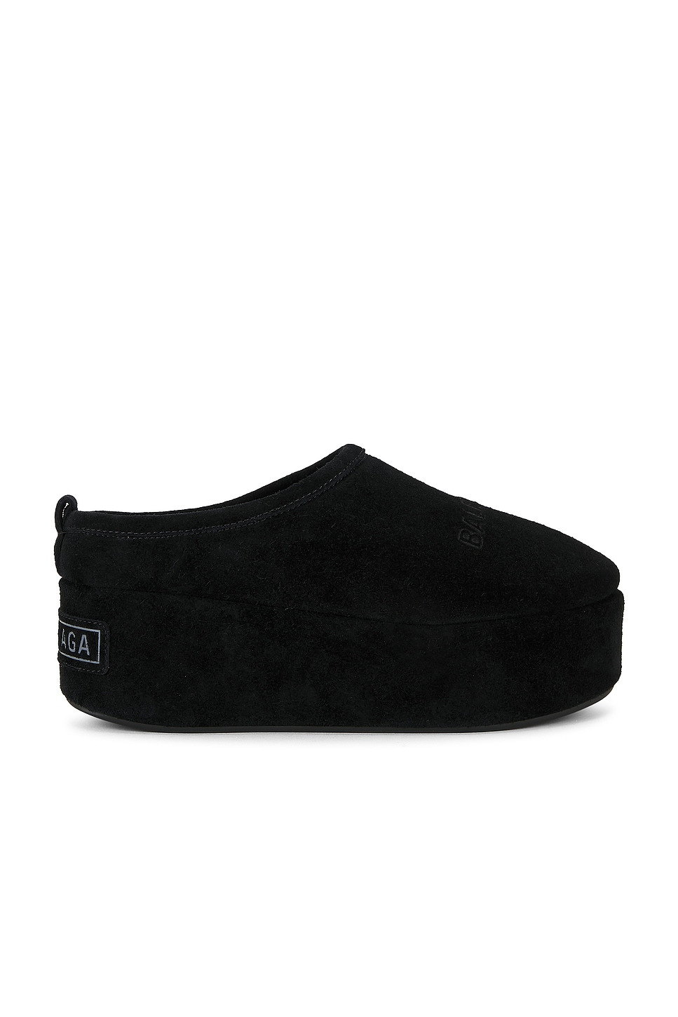 Details - Calfskin suede upper with manmade sole - Slip-on styling - Balenciaga logo on the upper - Balenciaga logo and details stamped at back - Rounded toe - Approx 55mm/ 2.16 inch platform - Made in Italy - Our Style No. BALF-WZ837 - Manufacturer Style No. 825258-WBFC1-1000