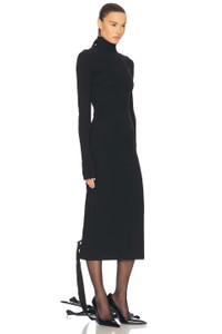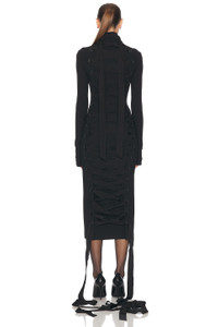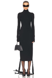 Details - Self 1: 75% viscose, 17% polyamide, 8% elastane - Self 2: 62% viscose, 37% cotton, 1% polyester - Lining: 84% polyamide, 16% elastane - Dry clean only - Fully lined - Hidden side zipper closure - Back lace-up design tie closure - Mockneck styling - Crepe fabric - Made in Italy - Our Style No. BALF-WD147 - Manufacturer Style No. 831227-TNV08-1000