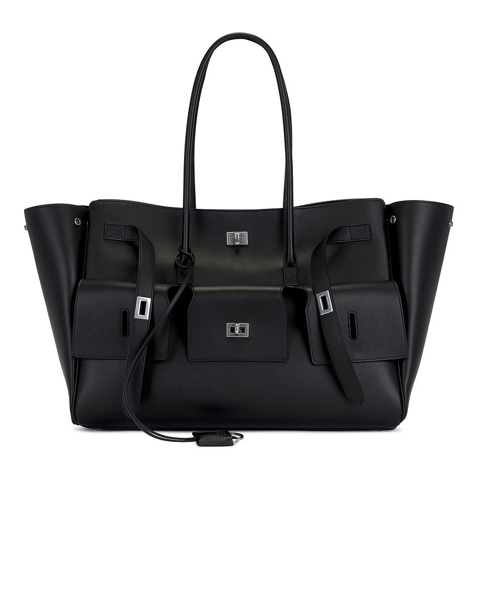 Details - Smooth calfskin leather exterior with nappa lining - Top silver-tone turnlock closure - One main compartment - Dual interior zippered pockets and dual slip pockets - Removable cloche cles with two split rings - Front slip pocket with gold-tone turnlock detail - Detachable and adjustable leather shoulder strap - Measures approx 44 cm W x 30 cm H x 19 cm D - Shoulder strap with a 24 cm drop - Made in Italy - Our Style No. BALF-WY1565 - Manufacturer Style No. 825834-2ABAW-1000