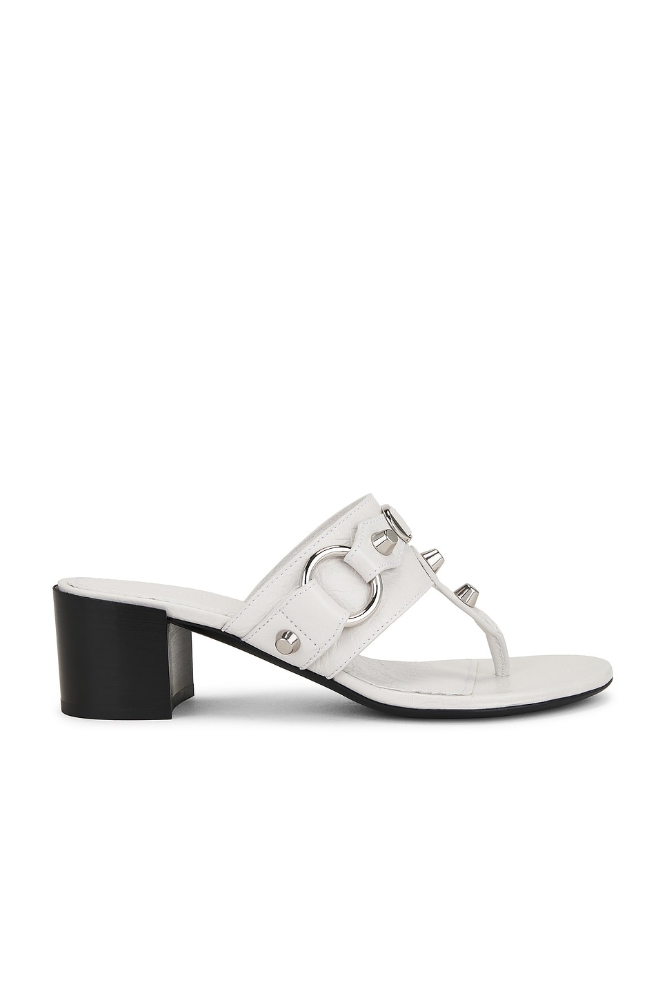 Details - Leather upper with leather sole - Slip-on styling - Leather footbed and lining - Silver-tone hardware and signature domed studs - Thong design - Rounded toe with wooden block heel - Approx 50mm/ 2 inch heel - Made in Italy - Our Style No. BALF-WZ815 - Manufacturer Style No. 828013-WAD4V-9081
