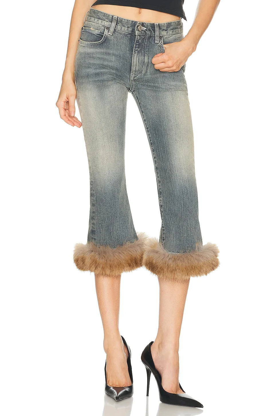 Details - Self: 99% cotton, 1% elastane - Lining: 65% polyester, 35% cotton - Contrast Fabric: 100% polyester - Dry clean only - Zip fly with button closure - 5-pocket design - Intentional fading and light whiskering - Intentional fading - Faux fur hem and back logo patch - Heavyweight denim fabric - Made in Italy - Our Style No. BALF-WJ37 - Manufacturer Style No. 856840-TTWC6-4200