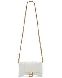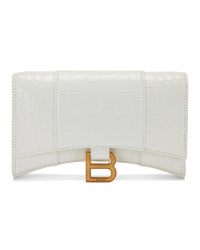 Women's Hourglass Wallet With Chain Crocodile Embossed in White