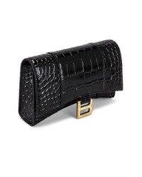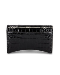 Women's Hourglass Wallet With Chain Crocodile Embossed in Black