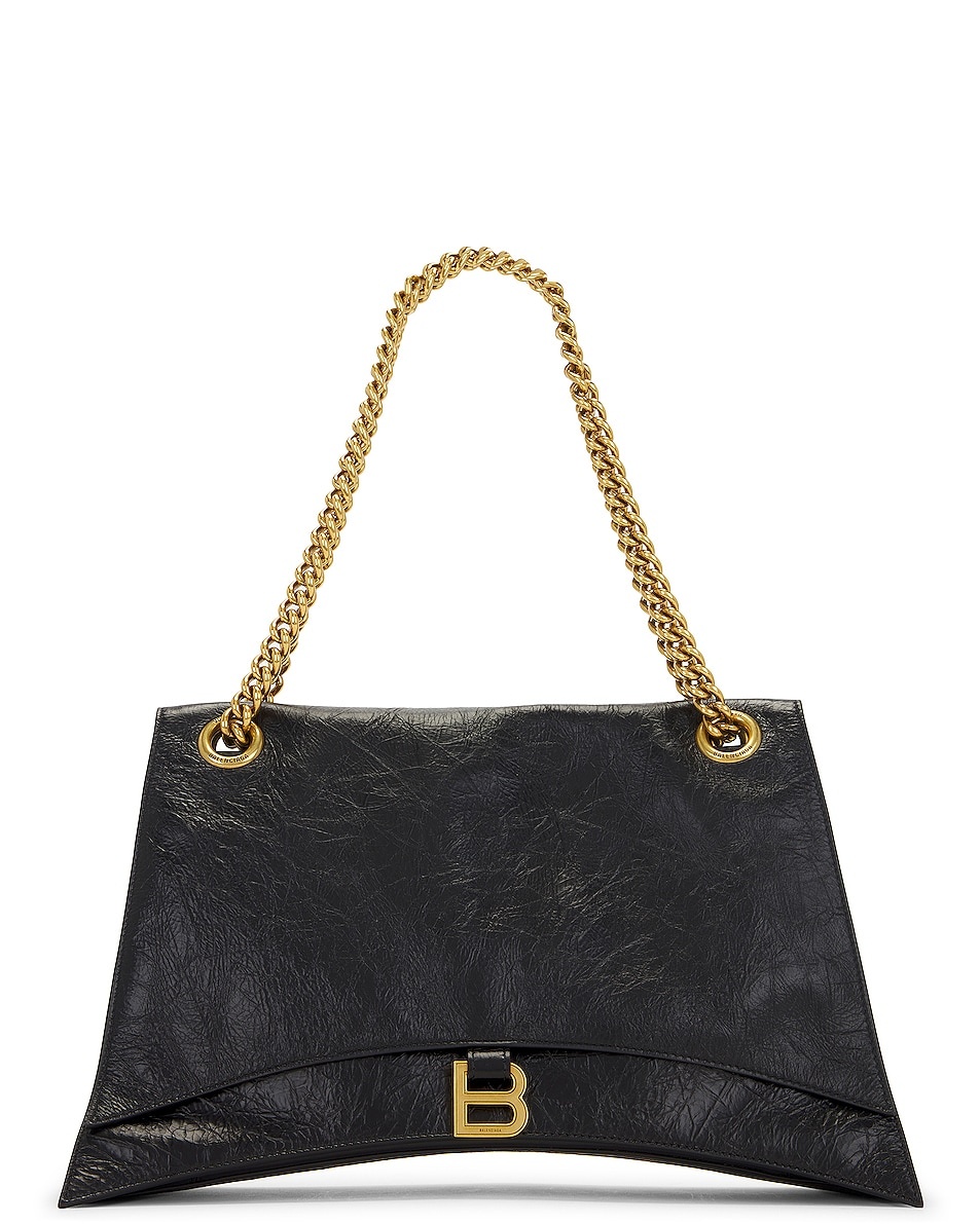 Details - Paper calfskin with nappa lining and gold-tone hardware - Made in Italy - Flap top with magnetic closure and B pendant - Interior zip and patch pocket - Curvilinear base - Gold-tone chainlink strap - Measures approx 15.7" W x 9.8" H x 5.1" D - Shoulder strap with a 18" drop - Our Style No. BALF-WY1219 - Manufacturer Style No. 716332-210IT-1000