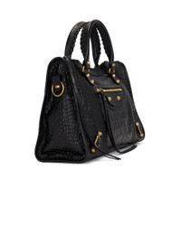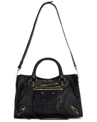 Details - Croc embossed leather exterior with textile lining - Top zipper closure - One main compartment - Interior zipper pocket - Front zippered pocket - Signature gold-tone studs and hardware throughout - Integrated handles with detachable shoulder strap - Measures approx 38 cm W x 23 cm H x 14 cm D - Shoulder strap with a 52 cm drop - Top handle with a 13 cm drop - Made in Italy - Our Style No. BALF-WY1612 - Manufacturer Style No. 823058-2AB09-1000
