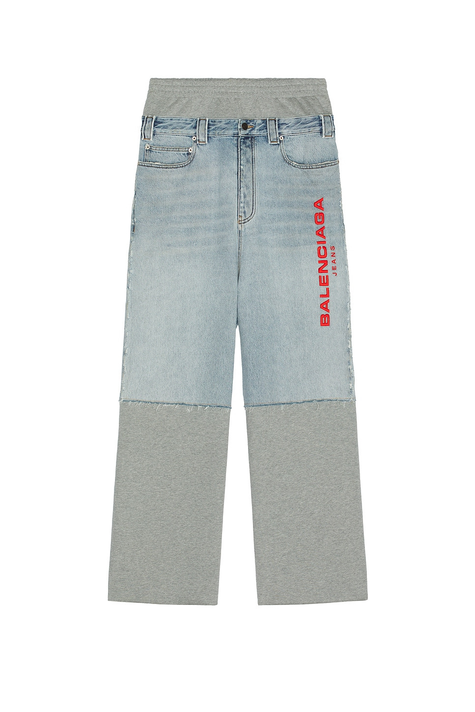 Details - 100% cotton - Machine wash - Pull-on styling with faux zip fly and elastic waistband - 5-pocket styling - Spliced cotton jersey and washed cotton denim - Made in Italy - Our Style No. BALF-MP95 - Manufacturer Style No. 831646TSW824200