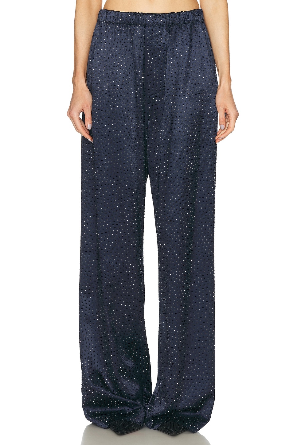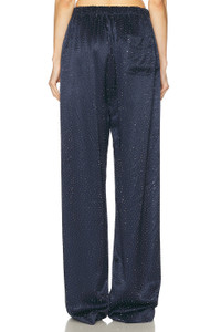 Details - 58% viscose, 42% cupro - Made in Italy - Dry clean - Pull-on styling with elastic waistband and interior drawstring tie closure and hidden button fly - 3-pocket styling - Crystal embellished satin fabric - Our Style No. BALF-WP126 - Manufacturer Style No. 768982-TPO90-4100