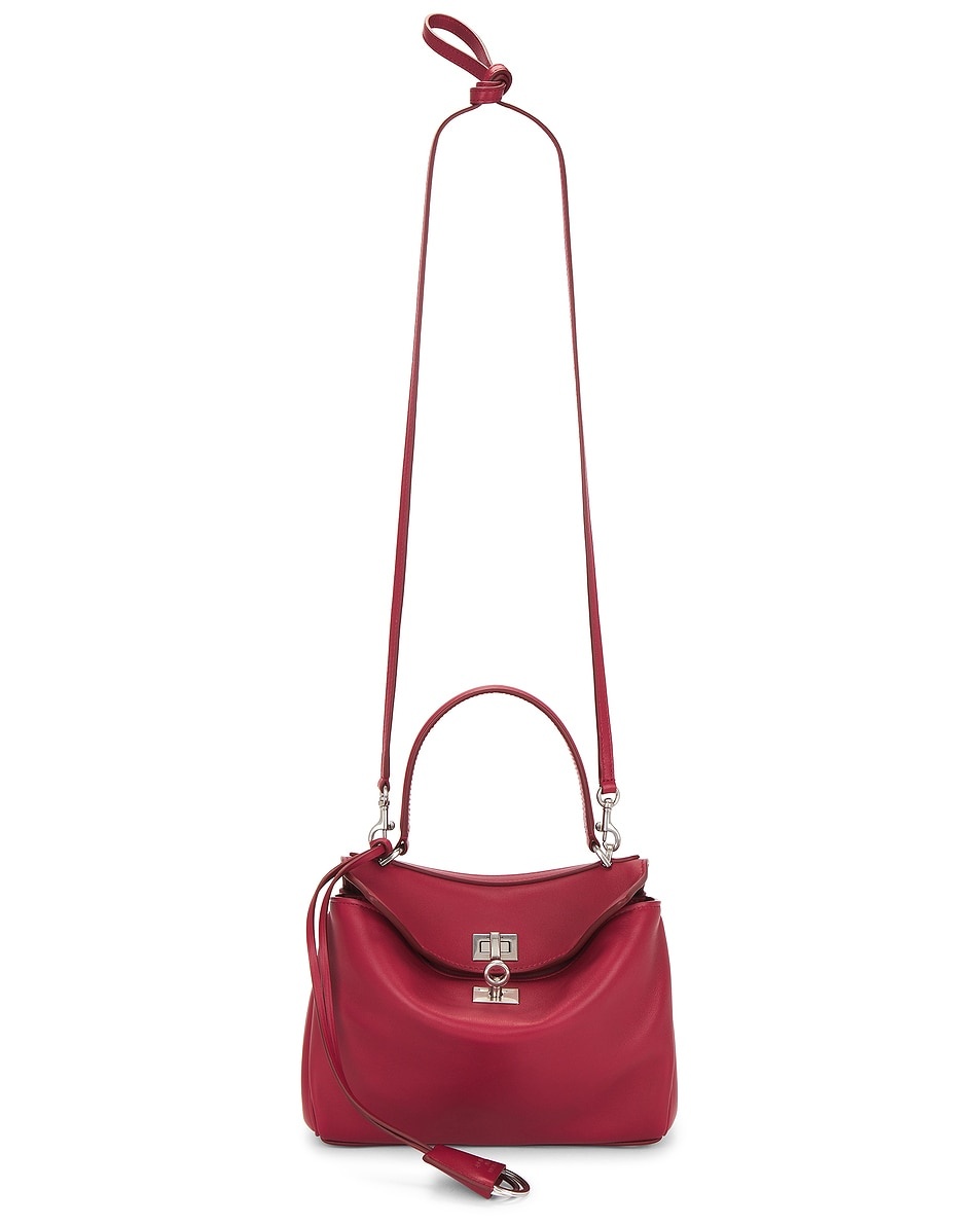 Details - Leather exterior and lining - Made in Italy - Flap top with dual gold-tone turn lock closures - One main compartment - Two exterior flat pockets - Detachable leather cloche cles with two split rings - Side snap closures - 4 brass feet - Integrated leather shoulder strap with detachable leather strap - Measures approx 23 cm W x 17 cm H x 10 cm D - Shoulder strap with a 69 cm drop - Top handle with a 12 cm drop - Our Style No. BALF-WY1552 - Manufacturer Style No. 795456-2ABQR-6246