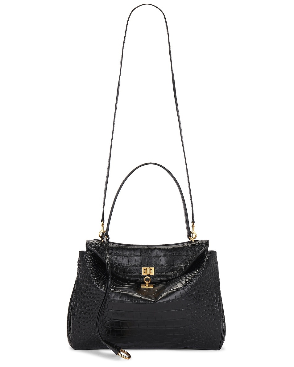 Details - Croc-embossed leather exterior with smooth leather lining - Made in Italy - Flap top with gold-tone turn lock closure - Two compartments - Two exterior slip pockets - Interior zipper pocket - Detachable leather key holder with two split rings - Integrated leather top handle and detachable leather shoulder strap - Measures approx 39 cm W x 28 cm H x 11 cm D - Shoulder strap with a 58 cm drop - Top handle with a 23 cm drop - Our Style No. BALF-WY1495 - Manufacturer Style No. 789772-2AA5L-1000