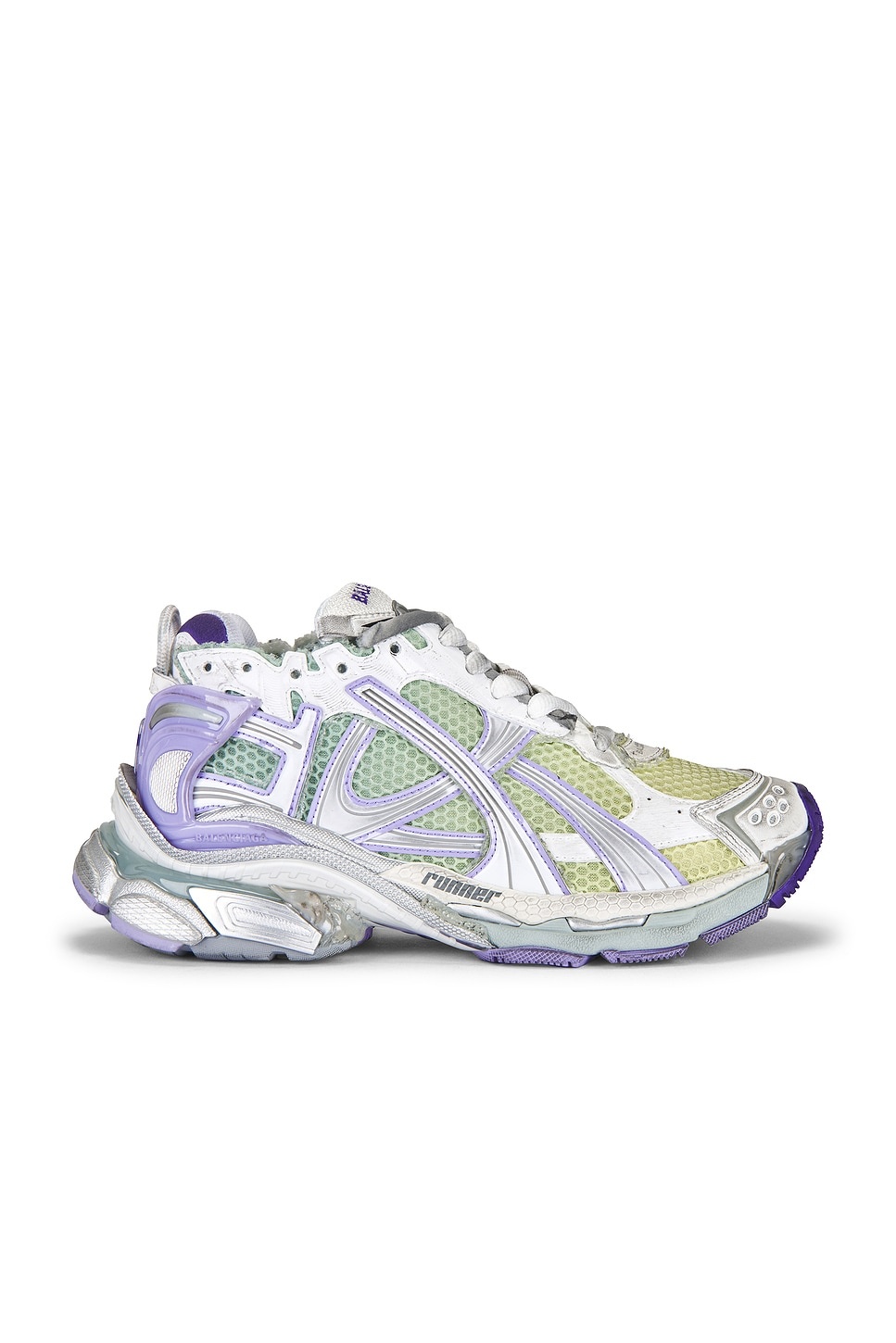Women's Runner Gradient Sneaker in White/grey/purple/neon Yellow