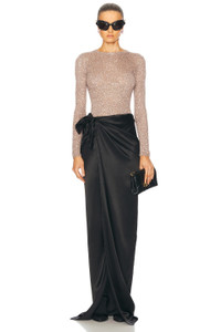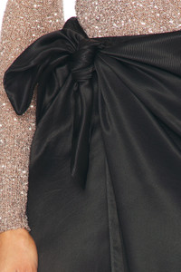 Details - 58% viscose, 42% cupro - Made in Italy - Dry clean only - Unlined - Wrap styling with button closure - Satin fabric - Our Style No. BALF-WQ82 - Manufacturer Style No. 807478-TLO28-1000