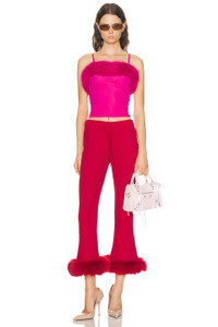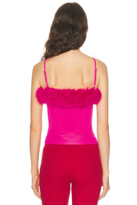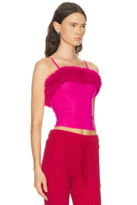 Details - Self: 83% polyamide, 17% elastane - Contrast Fabric: 100% polyester - Dry clean only - Pull-on styling - Adjustable shoulder straps - Faux fur neckline trim - Cropped fit - Midweight jersey fabric - Made in Portugal - Our Style No. BALF-WS407 - Manufacturer Style No. 858101-TRV38-5965