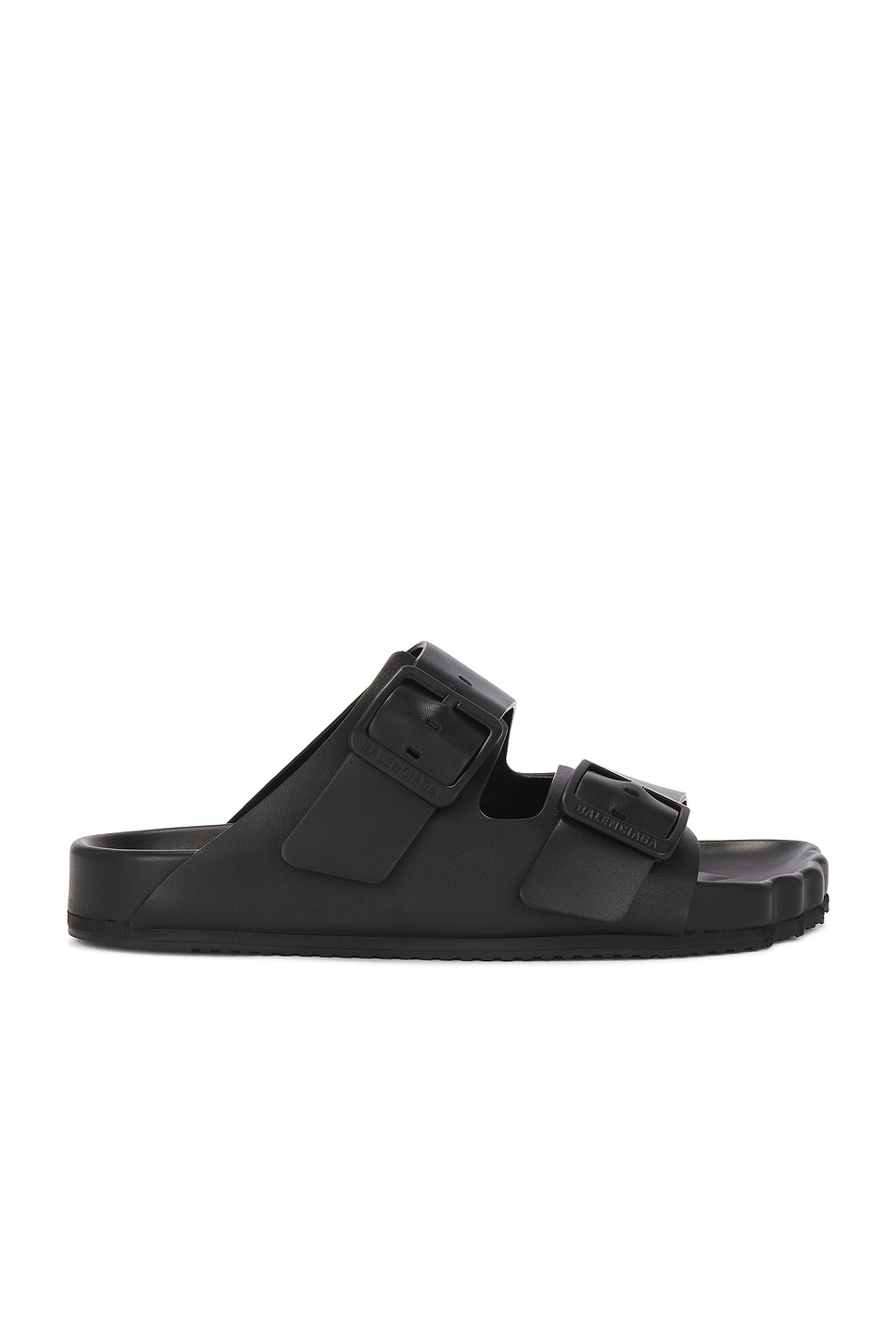 Details - Leather upper with rubber sole - Made in Italy - Slip-on styling - Contoured leather footbed with leather lining - Dual buckled straps with tonal hardware - Five toe anatomical shape - Our Style No. BALF-WZ758 - Manufacturer Style No. 761342-WCEA1-1000
