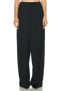 Details - Self 1: 100% wool - Self 2: 85% modal, 15% elastane - Lining: 100% cupro - Pocket Lining: 100% cotton - Dry clean only - Pull-on styling with elasticized waistband and zip fly - Side slit pockets - Twill fabric at front - Soft jersey fabric at back - Made in Italy - Our Style No. BALF-WP136 - Manufacturer Style No. 838868-TJT35-1000