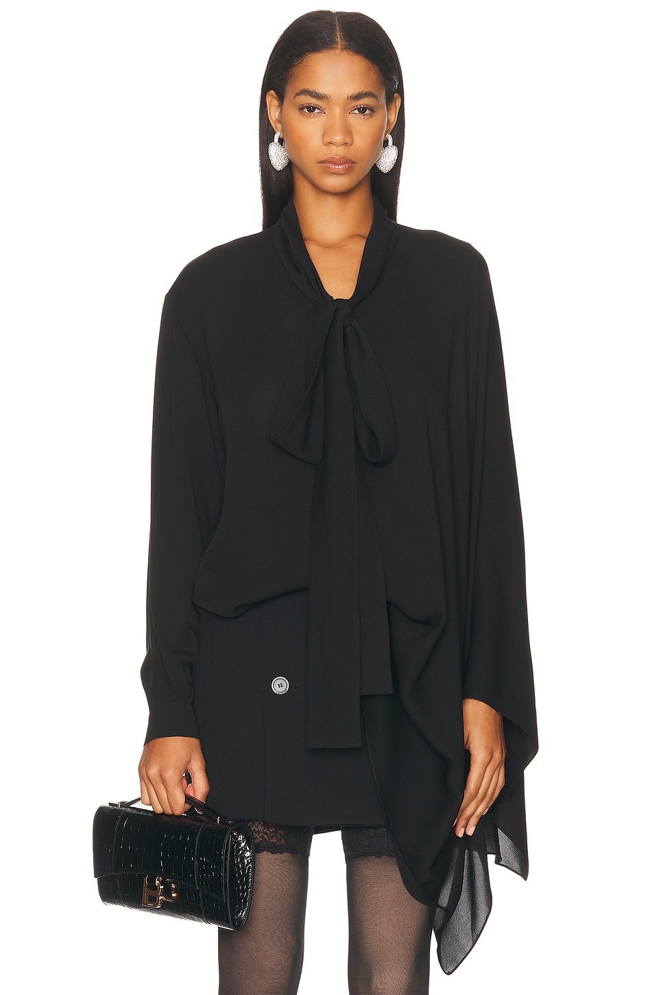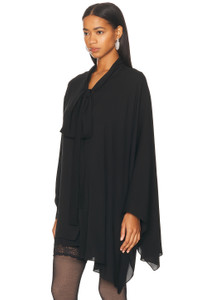 Details - 100% silk - Dry clean only - Front button closure - Tie-up closure at collar - Cape sleeve styling - Georgette fabric - Made in Italy - Our Style No. BALF-WS372 - Manufacturer Style No. 839280-TIN13-1000