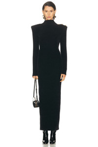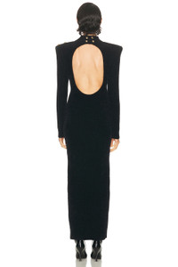 Details - Self and collar ribbing: 56% polyamide, 37% viscose, 7% polyester - Dry clean - Unlined - Pull on styling - Fuzzy knit textile - Built in shoulder pads - Gold-tone button details at shoulders - Open back design - Made in France - Our Style No. BLMR-WD4 - Manufacturer Style No. FF0RL226KI95