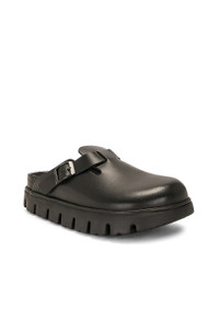 BOSTON CHUNKY SLIPPER IN BLACK NATURAL LEATHER WITH SERRATED SOLE