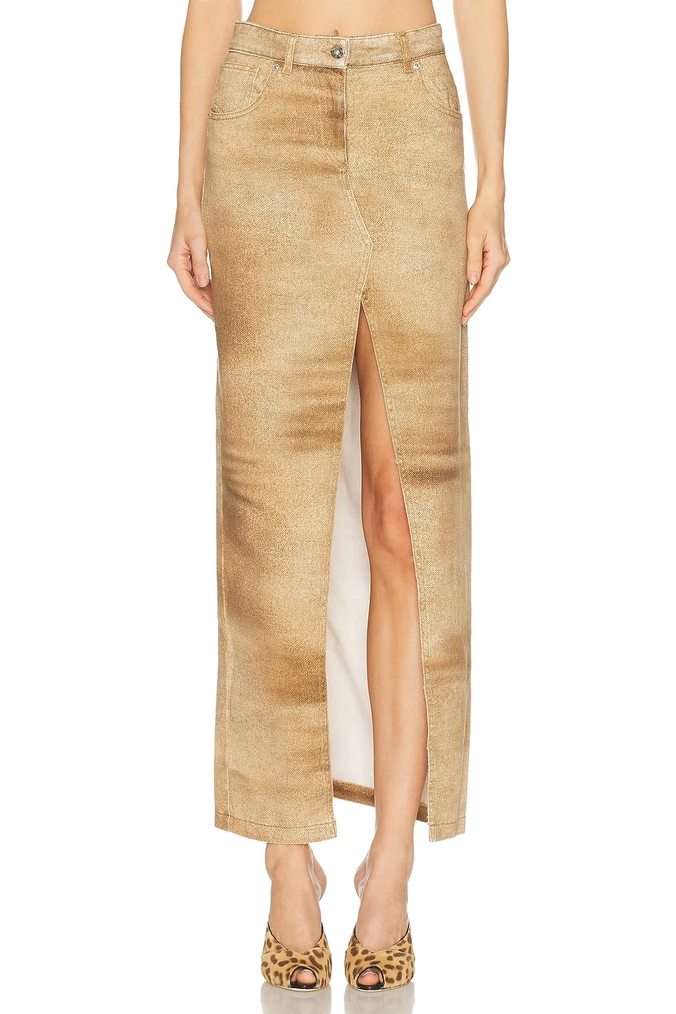 FIVE-POCKET PRINTED BULL DENIM SKIRT