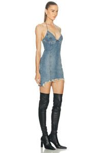 DISTRESSED DENIM DRESS WITH FRINGES