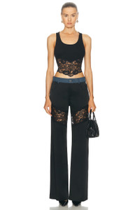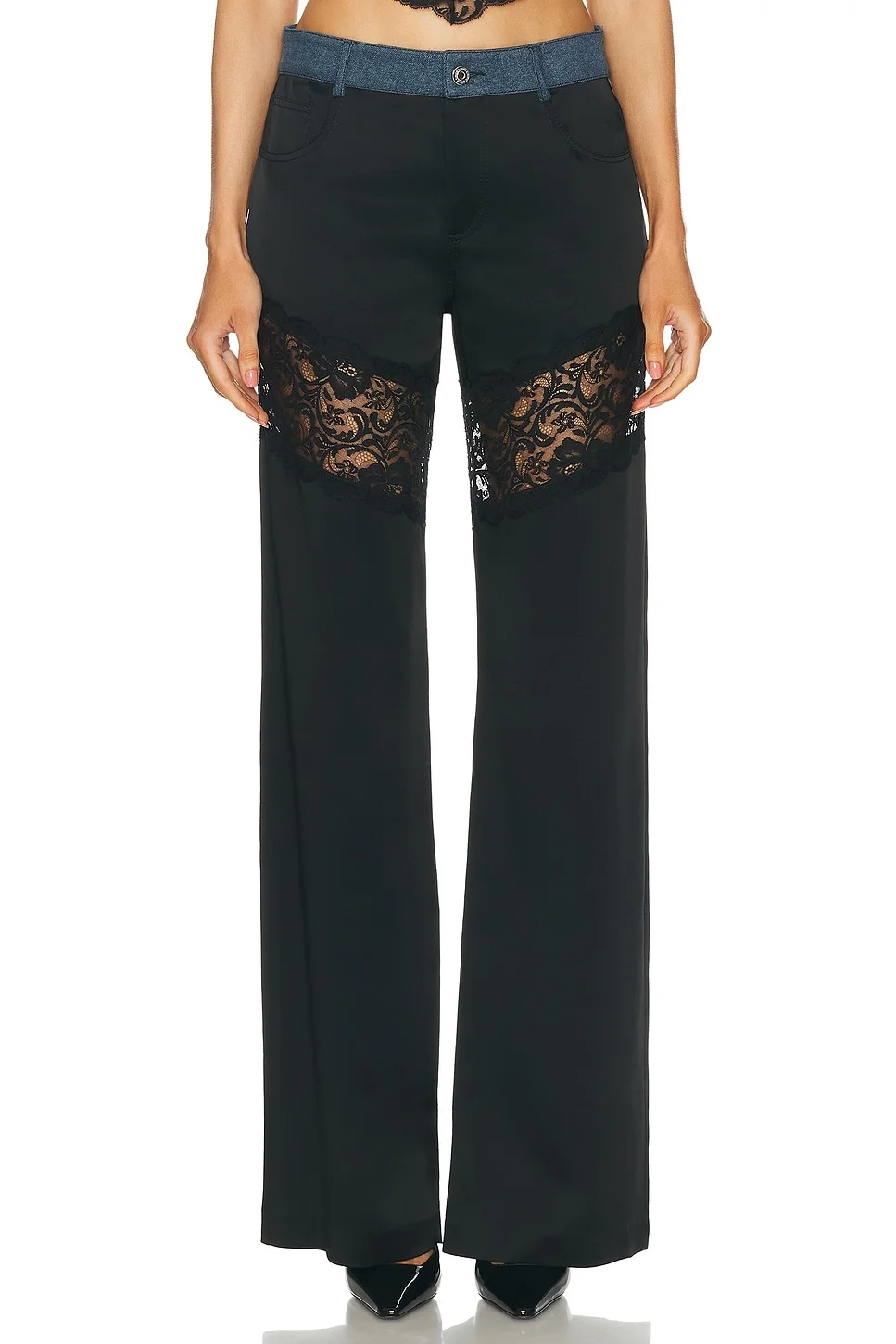 Details - Self 1: 71% aetate, 27% viscose, 2% elastane - Self 2: 98% cotton, 2% elastane - Self 3: 100% polyester - Self 4: 80% cotton, 20% polyamide - Made in Italy - Dry clean only - Zip fly with button closure - 5-pocket design - Denim at waist - Satin fabric and lace panel detail - Item not sold as a set - Our Style No. BMAF-WJ28 - Manufacturer Style No. A422P134A